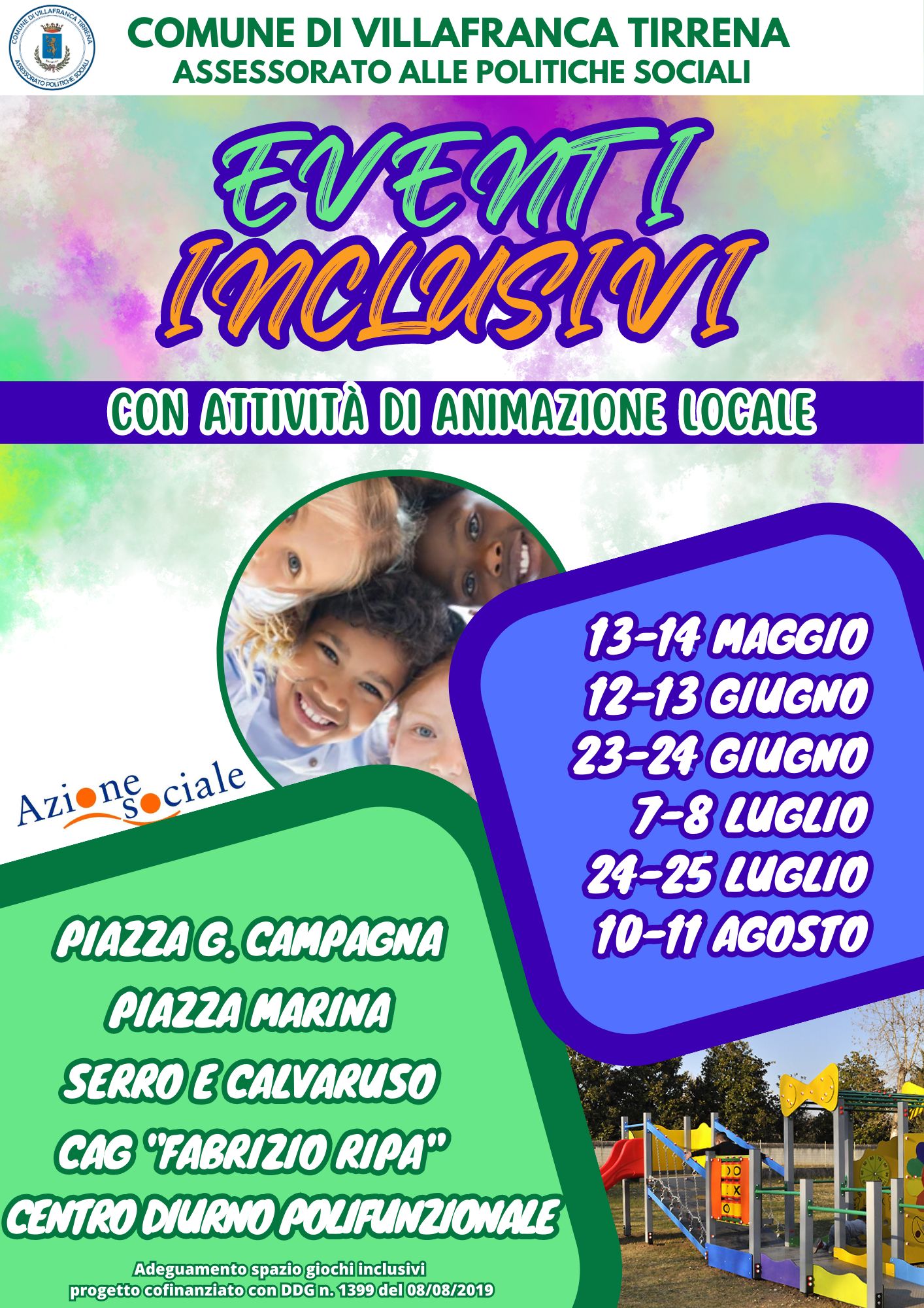 Gli eventi inclusivi con attività di animazione locale si svolgeranno in Piazza G. Campagna, Piazza Marina Serro e Calvaruso Cag "Fabrizio Ripa" Centro diurno polifunzionale nei seguenti giorni: